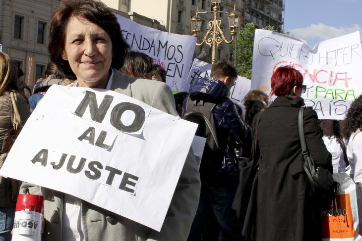 “Yo me puedo quedar afuera del sistema y, como yo, muchos investigadores jóvenes que tenemos diez años de inversión estatal en nuestra formación, desde nuestra carrera de grado hasta la doctoral”, aseguró Guadalupe Suárez, becaria del CONICET y referente de Científicos y Universitarios Autoconvocados, uno de los colectivos presentes en la marcha al Congreso. Junto con ellos, partidos políticos y gremios enarbolaron una única bandera, en la diversidad de sus consignas: abajo el ajuste.