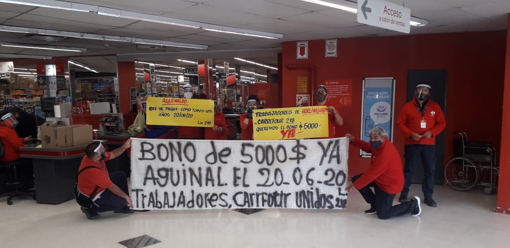 Este último punto hizo enfurecer a los trabajadores. Es que nada tiene que ver un derecho adquirido y legislado hace más de 70 años –el sueldo anual complementario-, con un extra acordado a partir del riesgo que implica para su salud en esta situación (cabe recordar que la cifra de trabajadores con Covid-19 ya supera los 200 en el país). Para colmo, Carrefour ya adelantó que lo pagará recién a partir del 30 de junio.