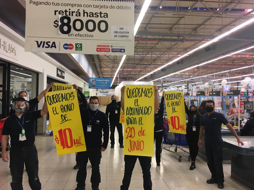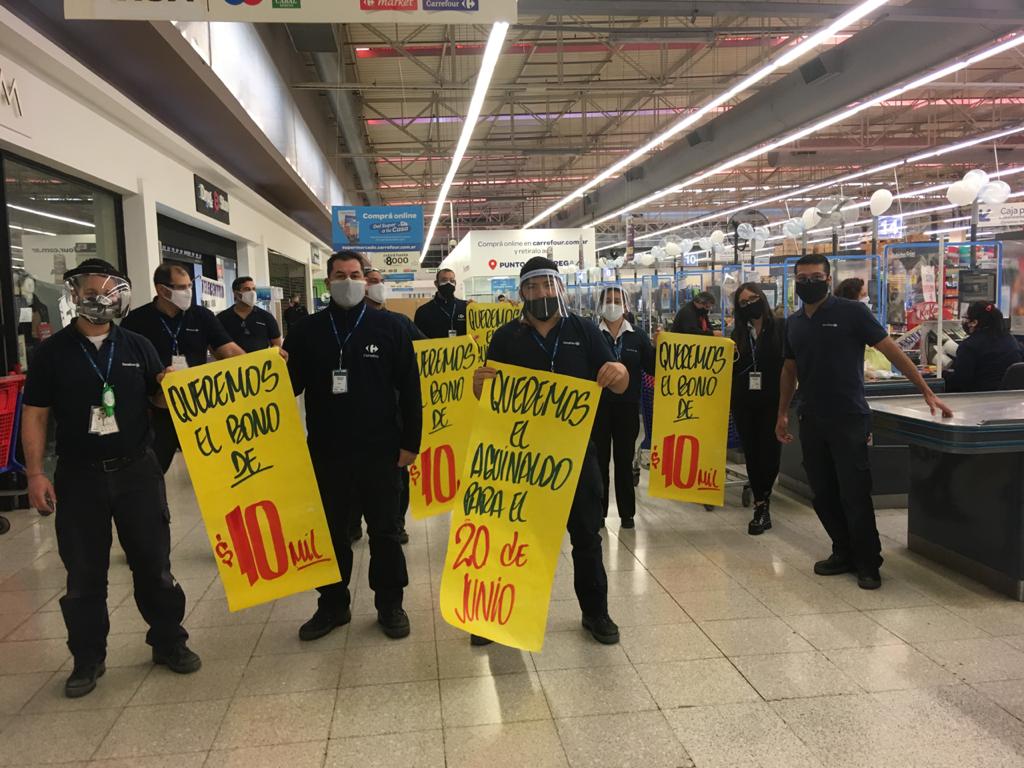 Tras una conciliación obligatoria que neutralizó un paro masivo de trabajadores de sucursales de todo el país para exigir un bono de $20.000 en marzo, los directivos de Carrefour, a cambio, se comprometieron a pagar uno de $5.000 por mes durante la cuarentena.